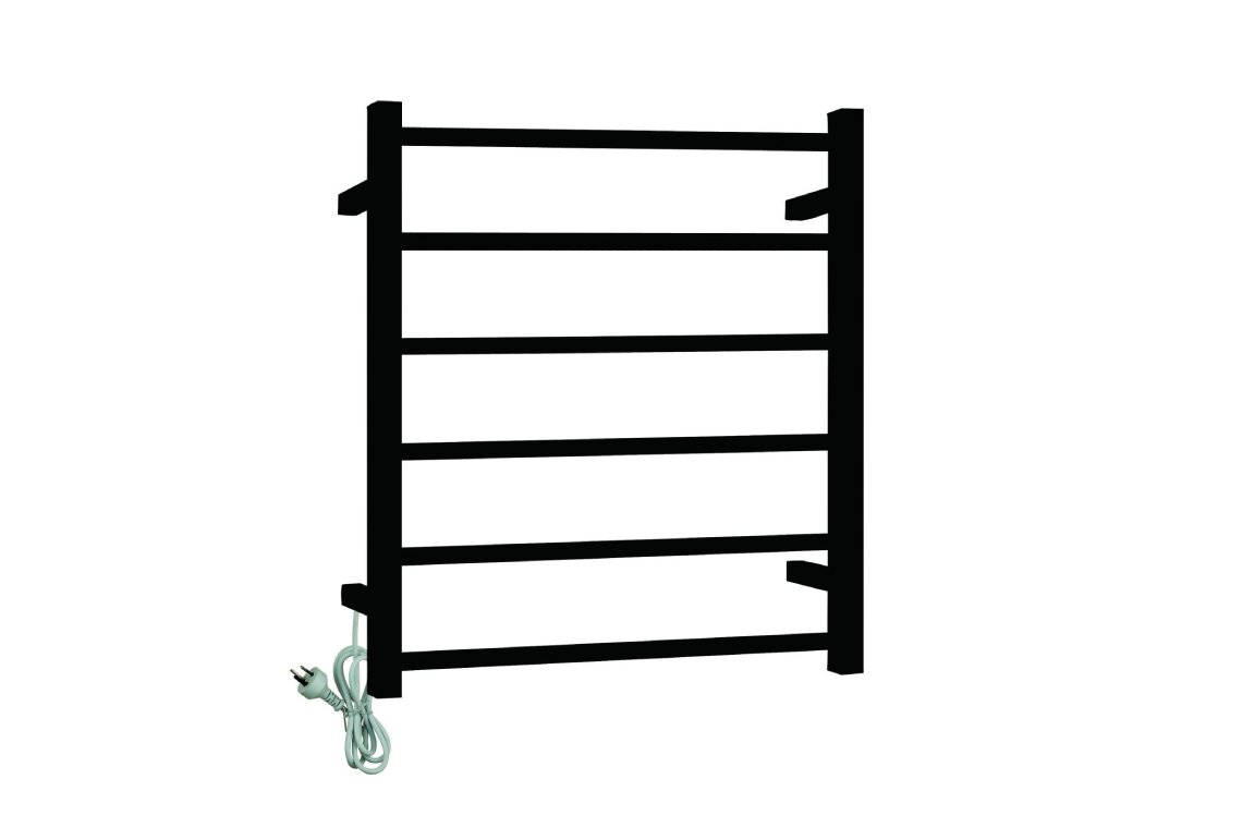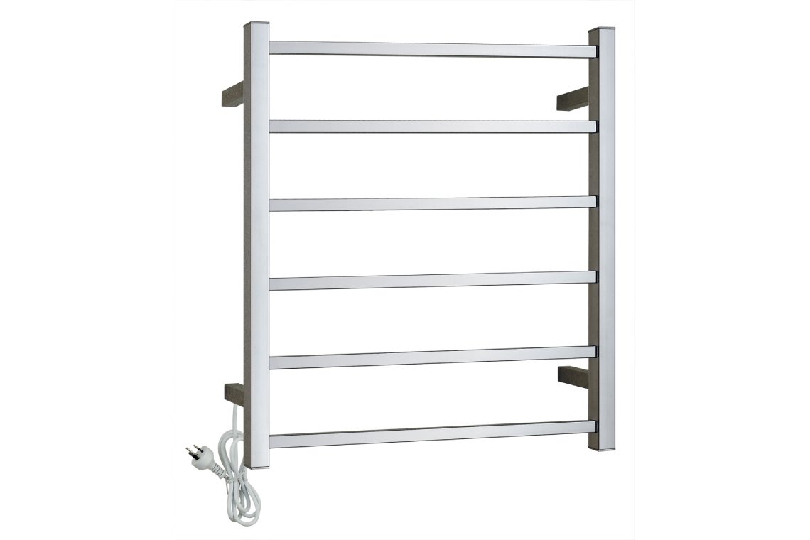 SQUARE STAINLESS STEEL ELECTRIC HEATED TOWEL RACK 6 BARS UNIVERSAL INLET